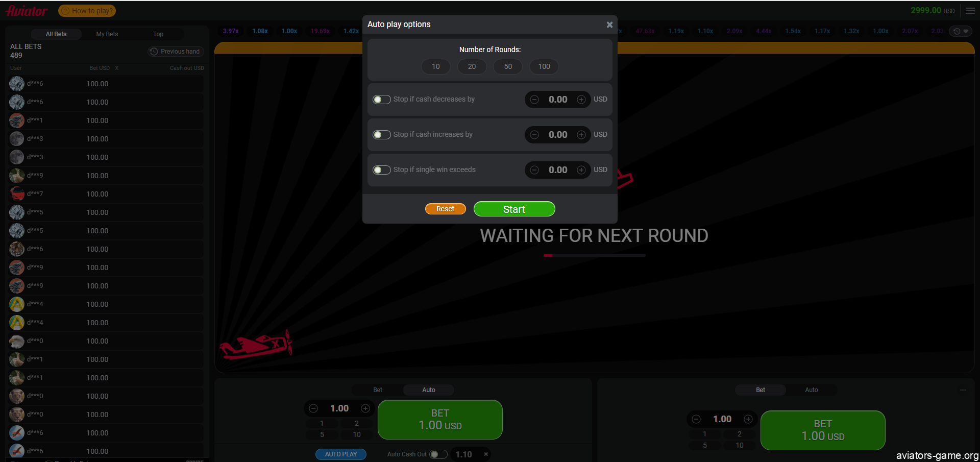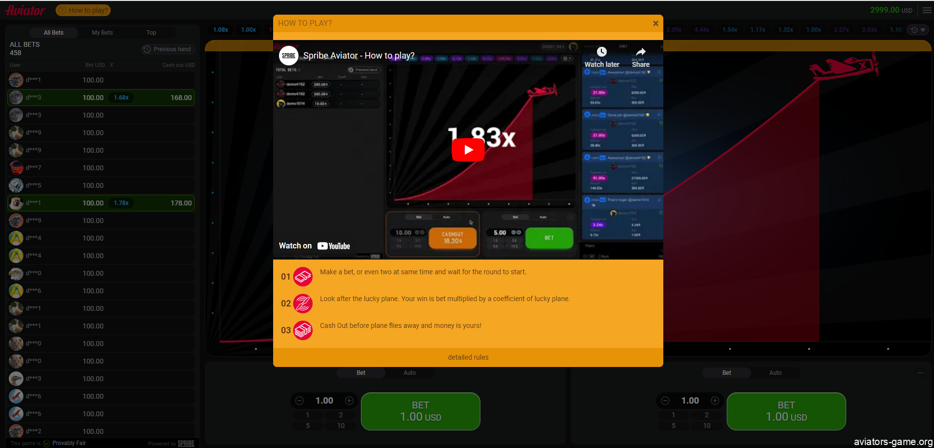 - Try to play the Aviator plane game with two concurrent bets;
